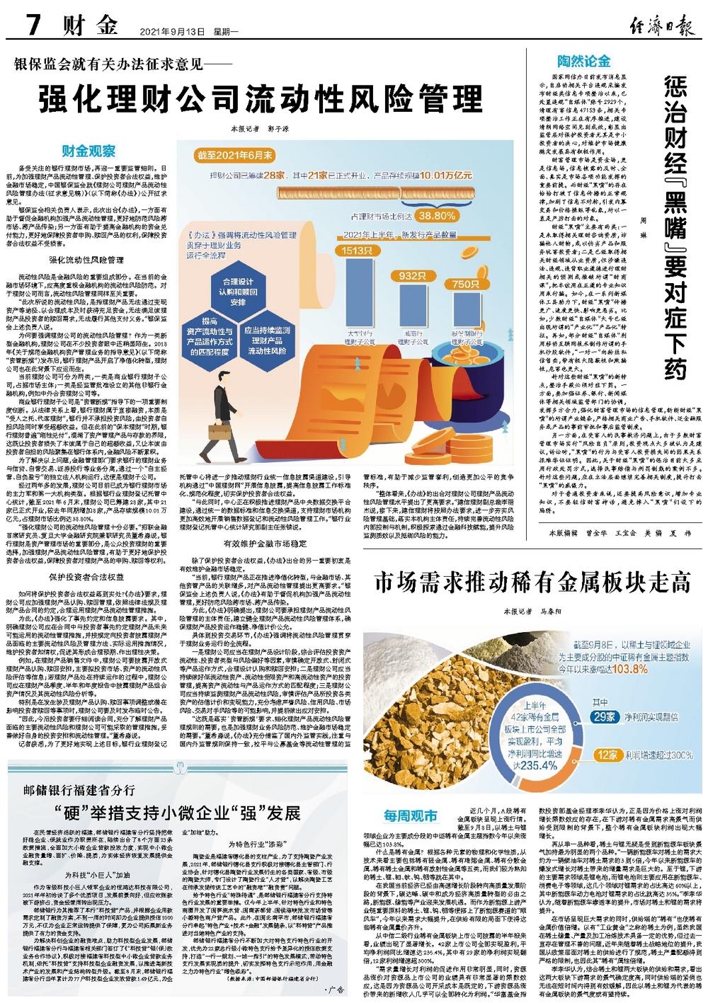 “当前,银行理财产品正在推进净值化转型,与金融市场、其他资管产品的关联增多,对产品流动性管理提出更高要求。”银保监会上述负责人说,《办法》有助于督促机构加强产品流动性管理,更好防范风险跨市场、跨产品传染。