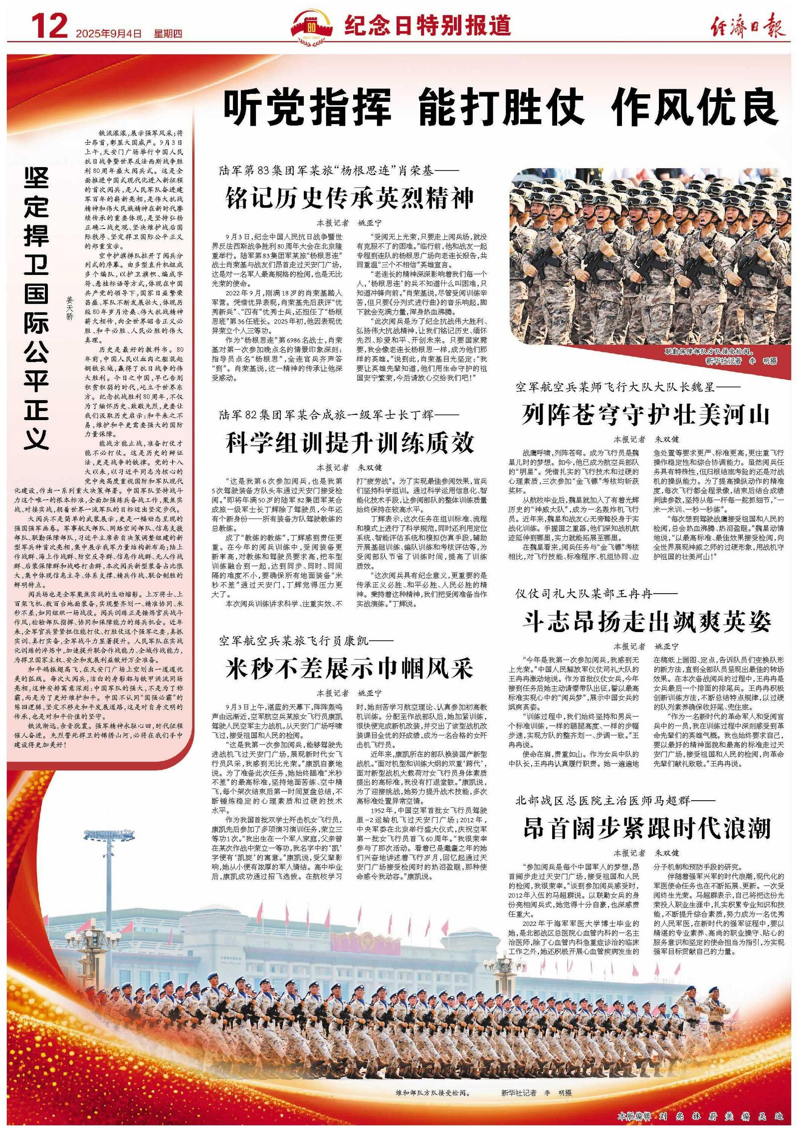 9月3日,纪念中国人民抗日战争暨世界反法西斯战争胜利80周年大会在北京隆重举行。陆军第83集团军某旅“杨根思连”战士肖荣基与战友们昂首走过天安门广场,这是对一名军人最高规格的检阅,也是无比光荣的使命。