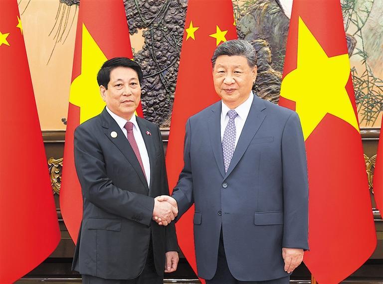习近平强调,中方支持越南走好符合本国国情的社会主义道路,开好越共十四大。双方要本着同志加兄弟的精神,深化治党治国经验交流,办好建交75周年暨“中越人文交流年”系列活动,给两国人民带来切实利益。面对单边主义、丛林法则逆流,越来越多的国家认识到,妥协退让没有出路,联合自强才有希望。我提出全球治理倡议,就是要推动全球治理体系朝着更加公正合理的方向发展。中方愿同越方一道,维护全球南方共同利益,为世界提供更多正能量。