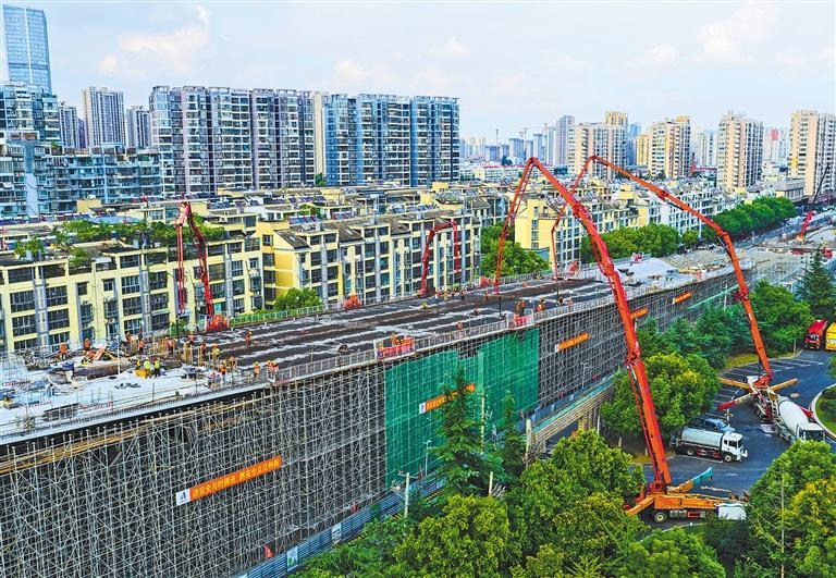 近日,安徽省合肥市清溪路高架项目现场,桥梁雏形已现,工人在开展混凝土浇筑作业。清溪路高架桥是新合肥西站的附属配套市政工程,建成后将与城市主干道紧密相连,为群众出行提供便利。张 敏摄(中经视觉)
