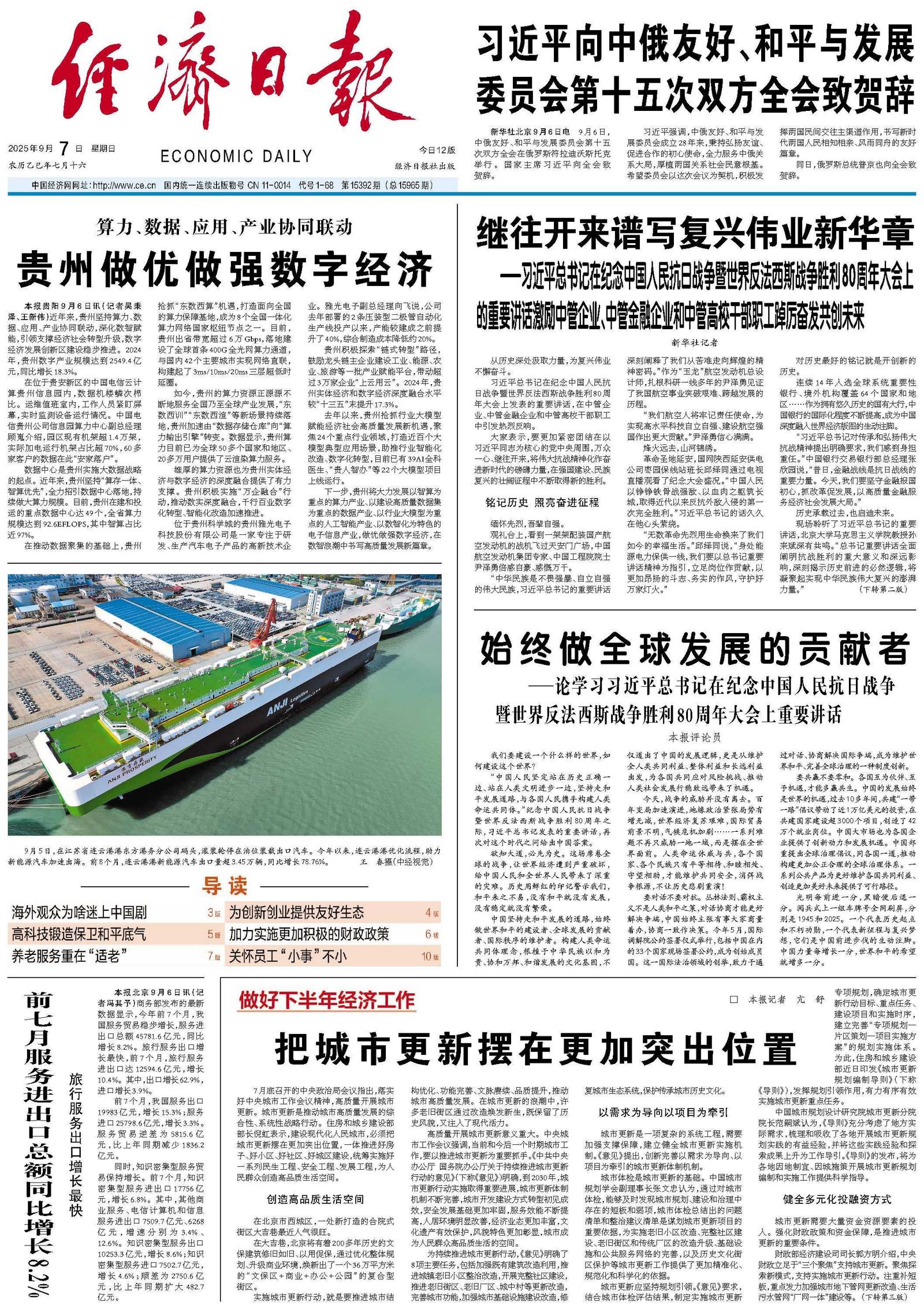本报贵阳9月6日讯(记者吴秉泽、王新伟)近年来,贵州坚持算力、数据、应用、产业协同联动,深化数智赋能,引领支撑经济社会转型升级,数字经济发展创新区建设稳步推进。2024年,贵州数字产业规模达到2549.4亿元,同比增长18.3%。