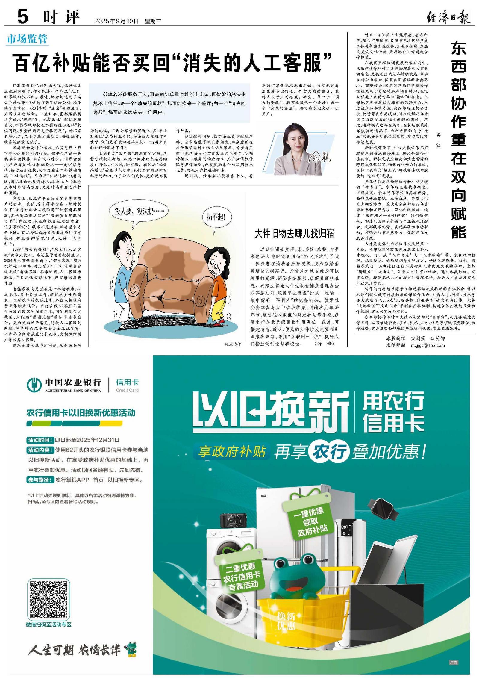 解决这些问题,指望企业自律远远不够。当前智能客服乱象频发,部分原因也在于监管与行业标准仍显滞后。希望有关部门能尽快出台智能客服应用规范,明确转接人工服务的响应标准、用户知情权保障等具体细则,以制度约束企业滥用技术优势、忽视用户权益的行为。