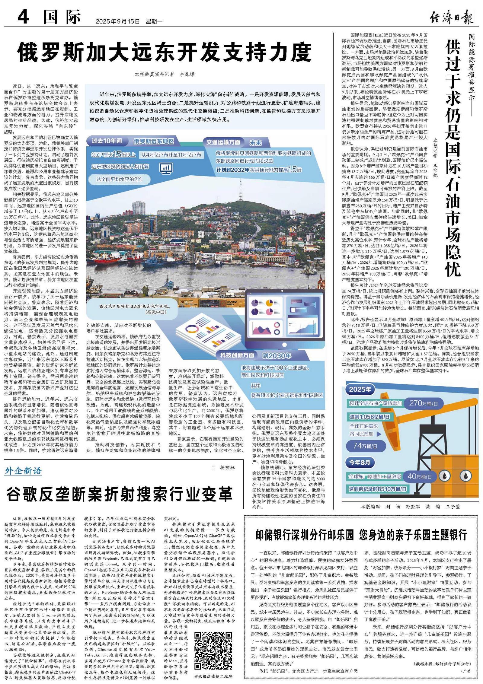 报告认为,供应过剩仍是当前国际石油市场的重要隐忧。9月7日,“欧佩克+”产油国启动第二轮减产退出计划后,国际油价仅小幅波动。因为8个增产国家计划在10月将产量目标提高13.7万桶/日,按此进度,完全解除自2023年4月实施的165万桶/日减产额度需耗时12个月。由于部分计划增产的国家已经在超配额生产,已快触及当前可释放的产能上限。截至9月,“欧佩克+”产油国自2025年一季度以来实际原油增产幅度仅为150万桶/日,明显低于此前宣布250万桶/日的目标,增产主要来自沙特及其他中东核心产油国。与此同时,非“欧佩克+”产油国供应量持续快速增长,美国、加拿大等地产量均处于或接近历史峰值。