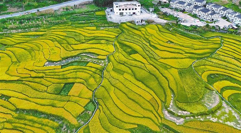 9月17日,贵州省毕节市大方县小屯乡梯田千亩水稻渐黄,迎来最佳观赏期。近年来,当地依托梯田风光和农耕文化,大力发展乡村旅游,打造农文旅融合项目,有效带动当地经济发展。