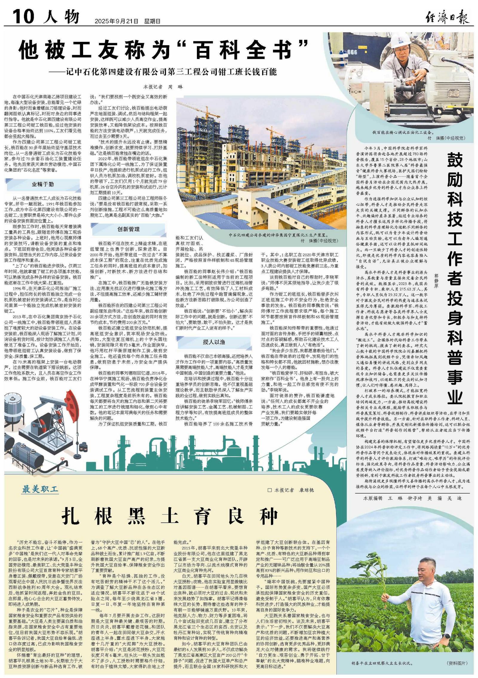 “历史不能忘,奋斗不能停,作为一名农业科技工作者,让‘中国碗’盛满更多‘中国粮’是我们这一代人对革命先辈的回答,也是对未来的承诺。”9月3日,全国劳动模范、最美职工、北大荒垦丰种业股份有限公司大豆首席育种专家胡喜平身着正装、佩戴绶带,受邀在天安门广场观看纪念中国人民抗日战争暨世界反法西斯战争胜利80周年大会。观礼结束后,他抓紧时间返程,奔赴金色的豆田。在那里,他心心念念的大豆正蓄势待发,即将进入成熟期。