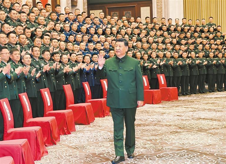 当天下午,习近平亲切接见了驻乌鲁木齐部队上校以上领导干部和部分基层先进模范、文职人员,代表党中央和中央军委向驻新疆部队全体官兵致以诚挚问候,并同大家合影留念。