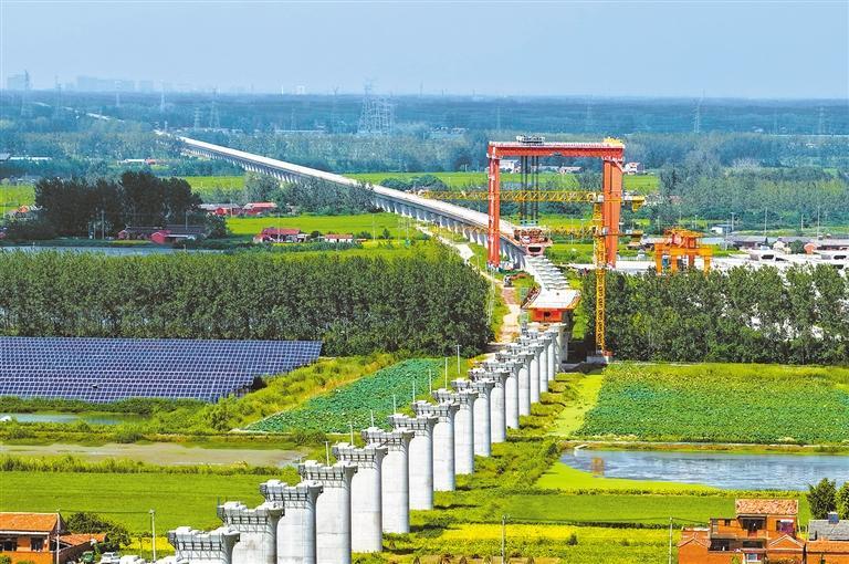 9月22日,江苏省淮安市,工人在宁淮城际铁路(洪泽段)项目现场施工。宁淮城际铁路是长三角城际铁路网的重要组成部分,建成后南京与淮安将实现1小时直达,在方便沿线人民群众出行、推动区域协调发展方面具有积极作用。殷 潮摄(中经视觉)