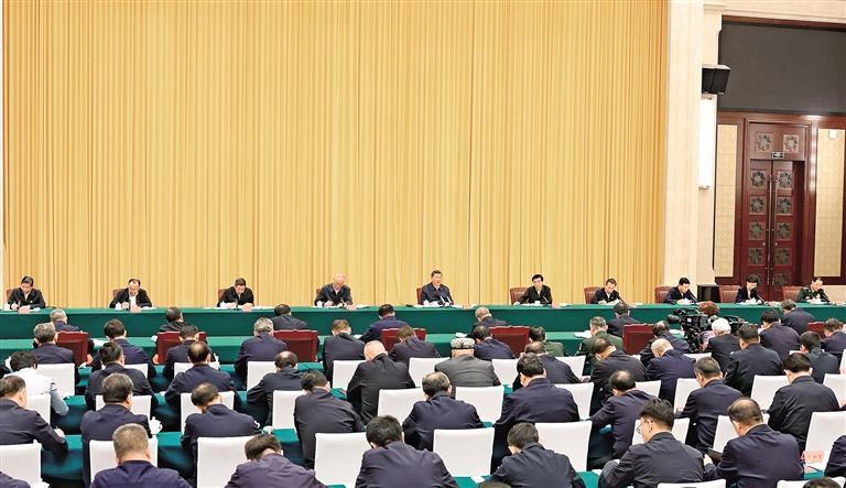 9月24日下午,率中央代表团出席新疆维吾尔自治区成立70周年庆祝活动的中共中央总书记、国家主席、中央军委主席习近平在乌鲁木齐听取新疆维吾尔自治区党委和政府工作汇报,发表了重要讲话。新华社记者 丁 林摄