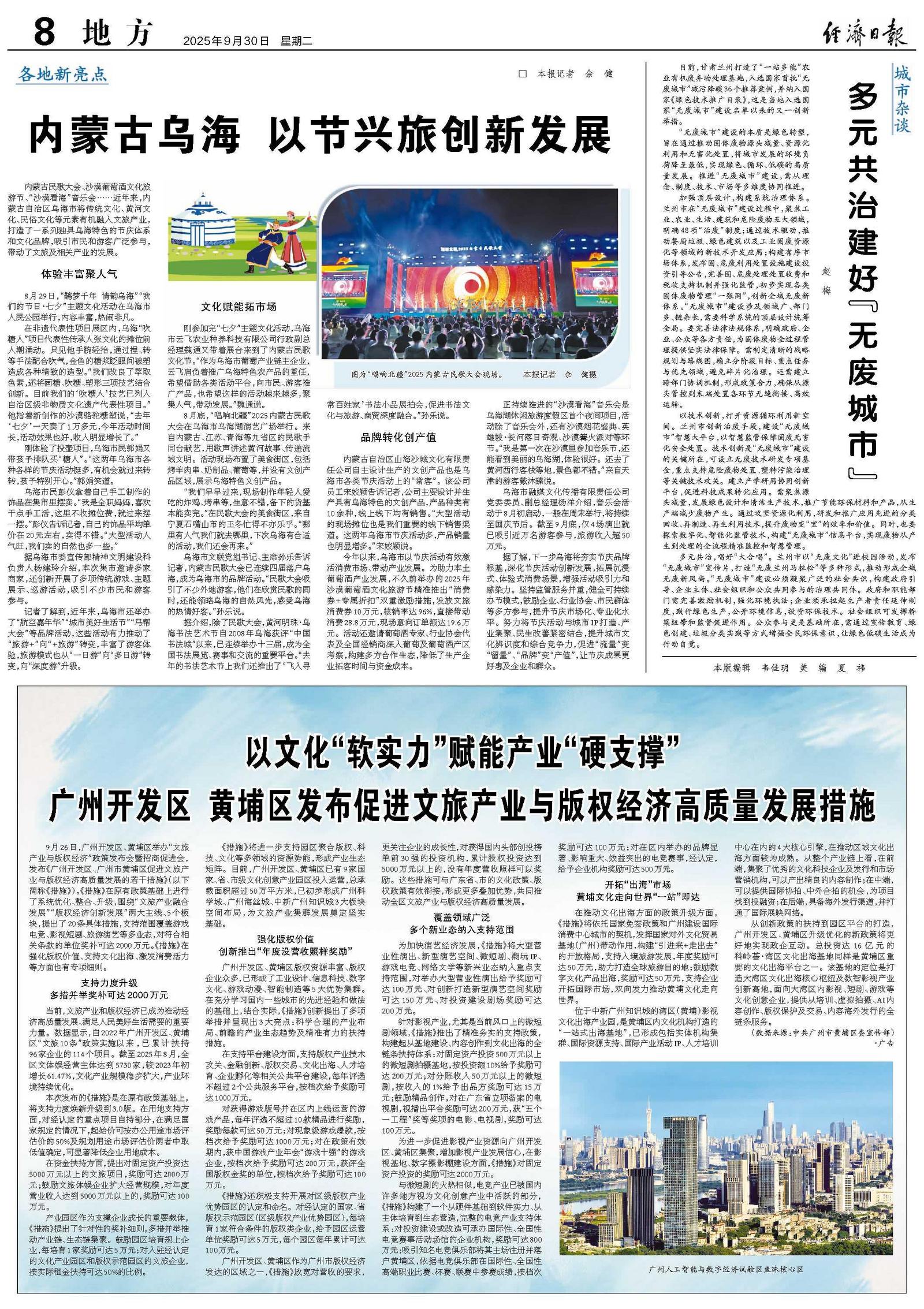 内蒙古民歌大会、沙漠葡萄酒文化旅游节、“沙漠看海”音乐会……近年来,内蒙古自治区乌海市将传统文化、黄河文化、民俗文化等元素有机融入文旅产业,打造了一系列独具乌海特色的节庆体系和文化品牌,吸引市民和游客广泛参与,带动了文旅及相关产业的发展。