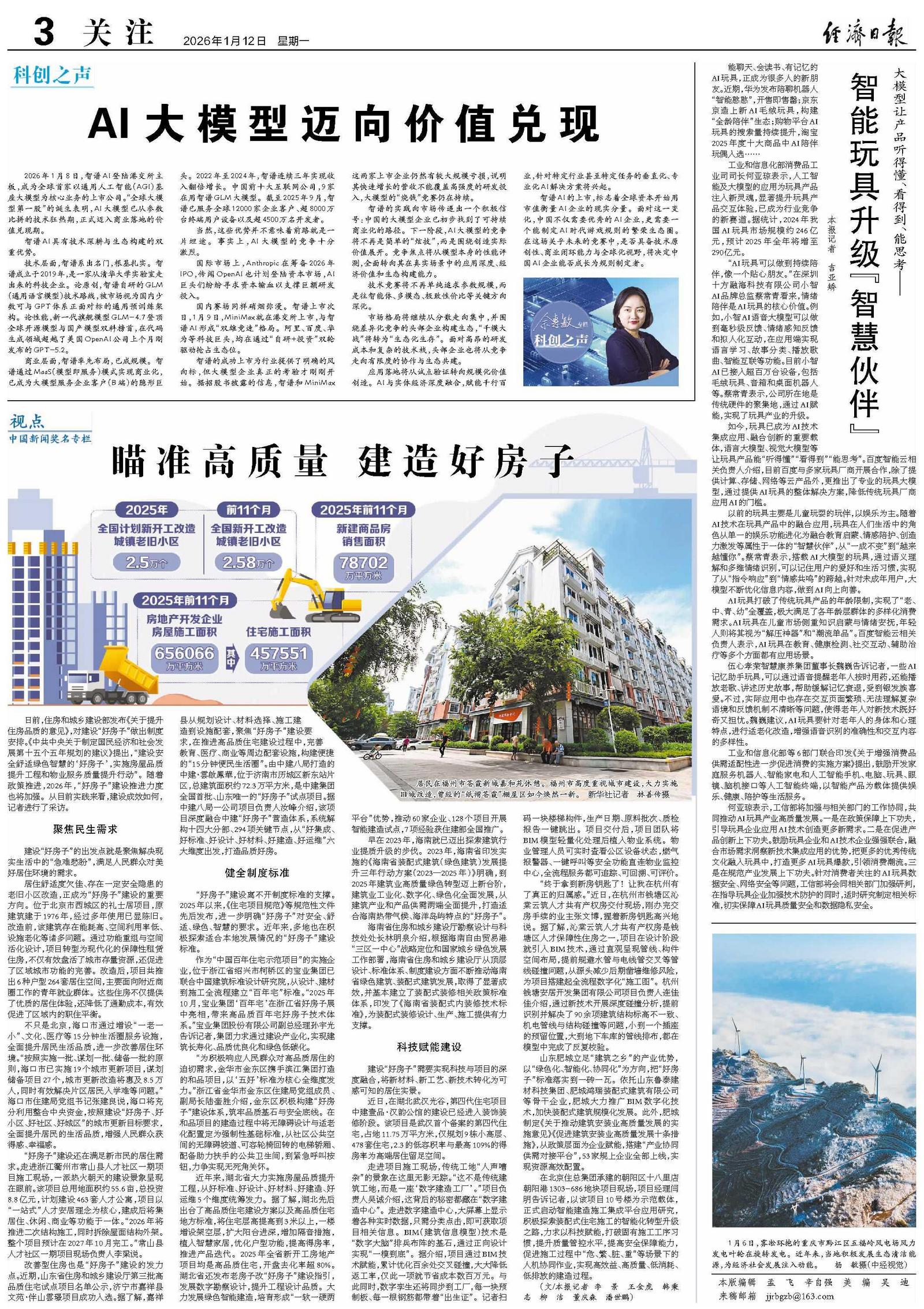 日前,住房和城乡建设部发布《关于提升住房品质的意见》,对建设“好房子”做出制度安排。《中共中央关于制定国民经济和社会发展第十五个五年规划的建议》提出,“建设安全舒适绿色智慧的‘好房子’,实施房屋品质提升工程和物业服务质量提升行动”。随着政策推进,2026年,“好房子”建设推进力度也将加强。从目前实践来看,建设成效如何,记者进行了采访。