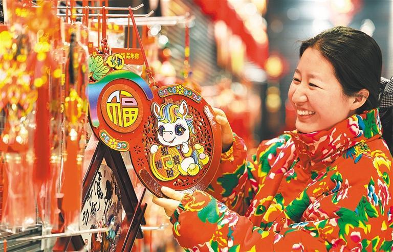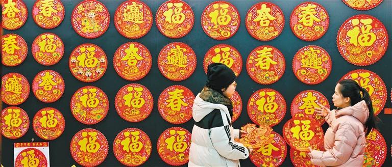 一月二十一日,“世界超市”中国义乌国际商贸城,客商在选购福字。随着春节临近,商城内各类年货用品不断上新,迎来消费高峰。吕 斌摄(中经视觉)
