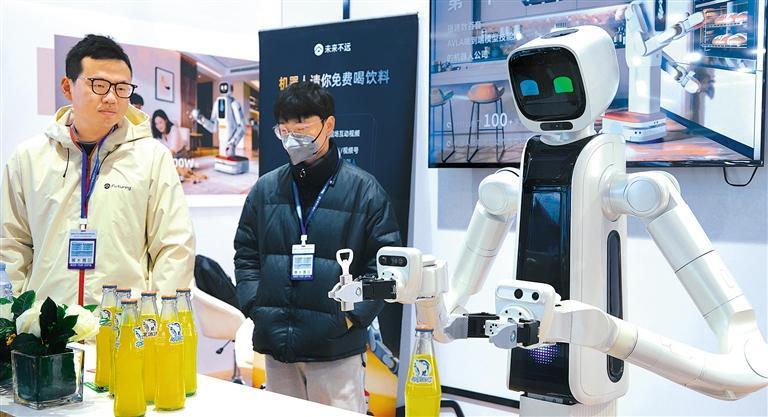三月十八日,北京国际人工智能应用与机器人创新博览会在北京开幕。这是博览会展出的家庭通用机器人。