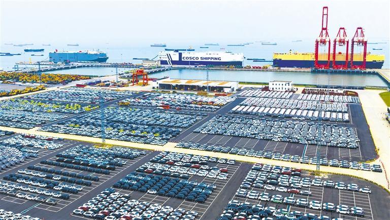 近日,江苏省苏州港太仓港区,7500车位LNG双燃料汽车运输船“开元口”轮正装载出口汽车。据介绍,该轮可灵活适配各类车辆,充分满足全球汽车贸易多元化物流需求。