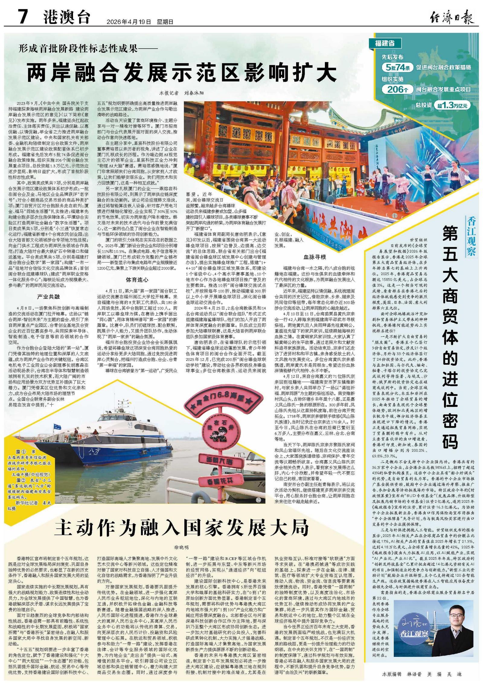 香港的未来与粤港澳大湾区紧密相连,制定首个五年发展规划必将进一步推进大湾区建设,应破解粤港澳三地在规则衔接、机制对接中的难点堵点,尤其是在执业资格互认、标准对接等“软联通”方面寻求突破。在“港澳药械通”等成功实践的基础上,探索进一步在金融、法律、建筑、医疗等领域扩大专业资格互认范围,推动人流、物流、资金流、信息流等要素高效便捷流动。同时,香港凭借“一国两制”的独特制度优势,以及高度法治化、市场化的营商环境,通过与大湾区内地城市的优势互补,继续推动形成协同发展的产业集群,将进一步巩固其作为国际金融、贸易和航运中心的地位,助力整个区域在全球经济格局中提升国际竞争力。