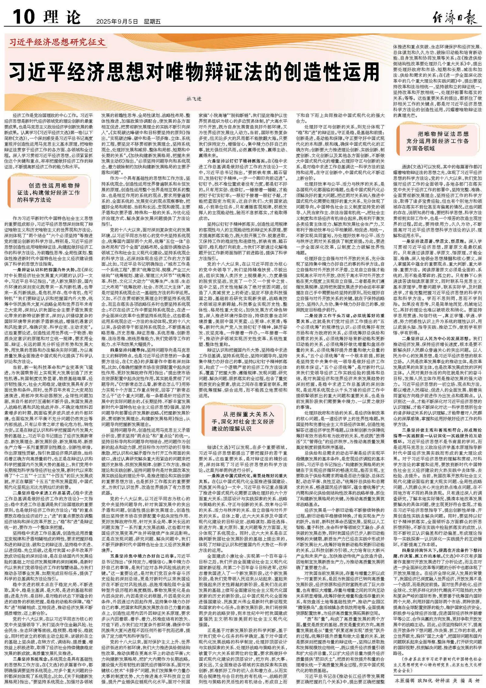 习近平经济思想对唯物辩证法的创造性运用