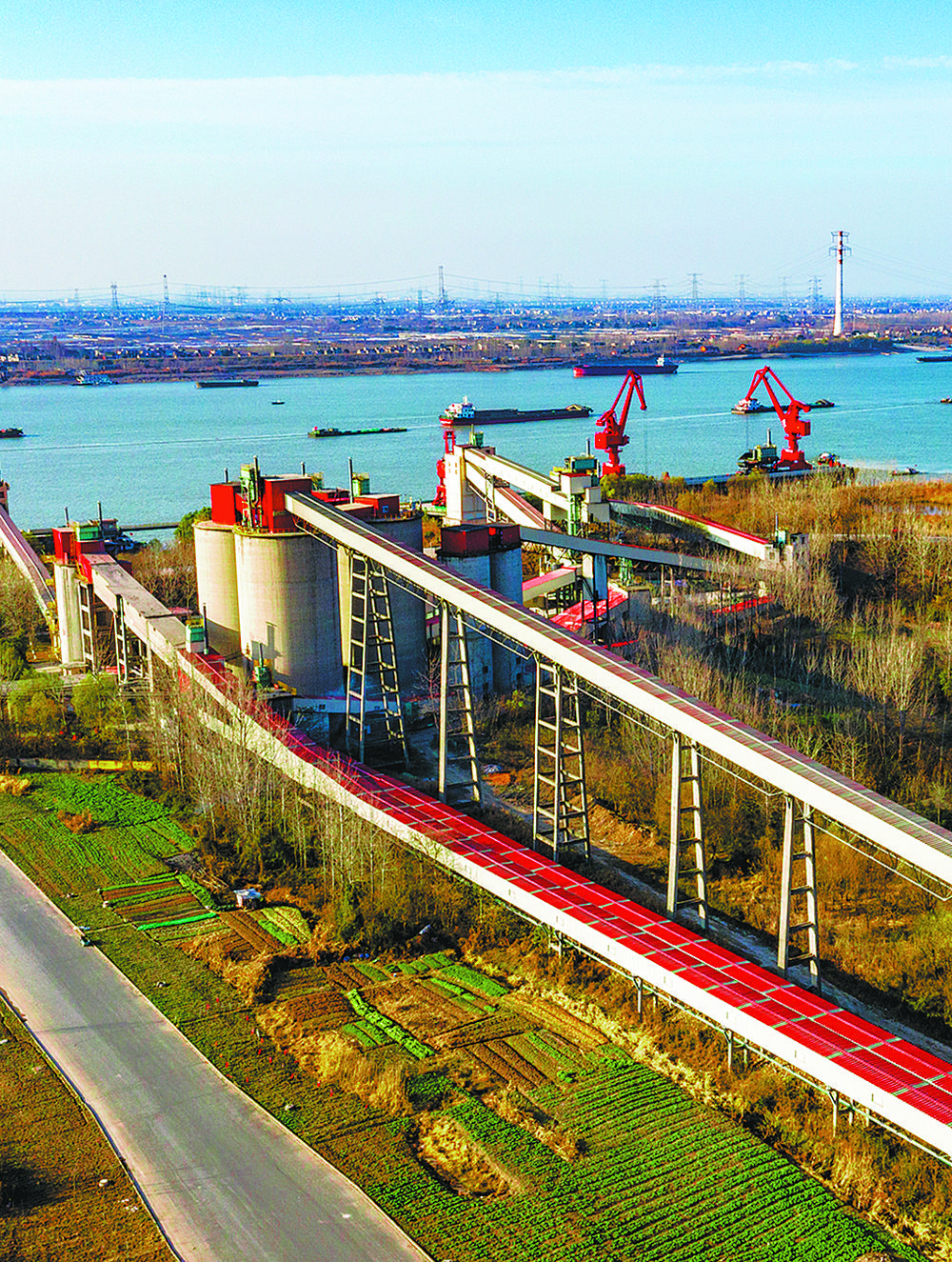 十二月二十日,航拍安徽省芜湖市繁昌区的荻港海螺全封闭式运输廊道。近年来,繁昌区在开展矿山环境整治工作中,积极推进大型物料尽量采用廊道运输代替公路运输,在降低道路运输负荷的同时,改善生态环境。