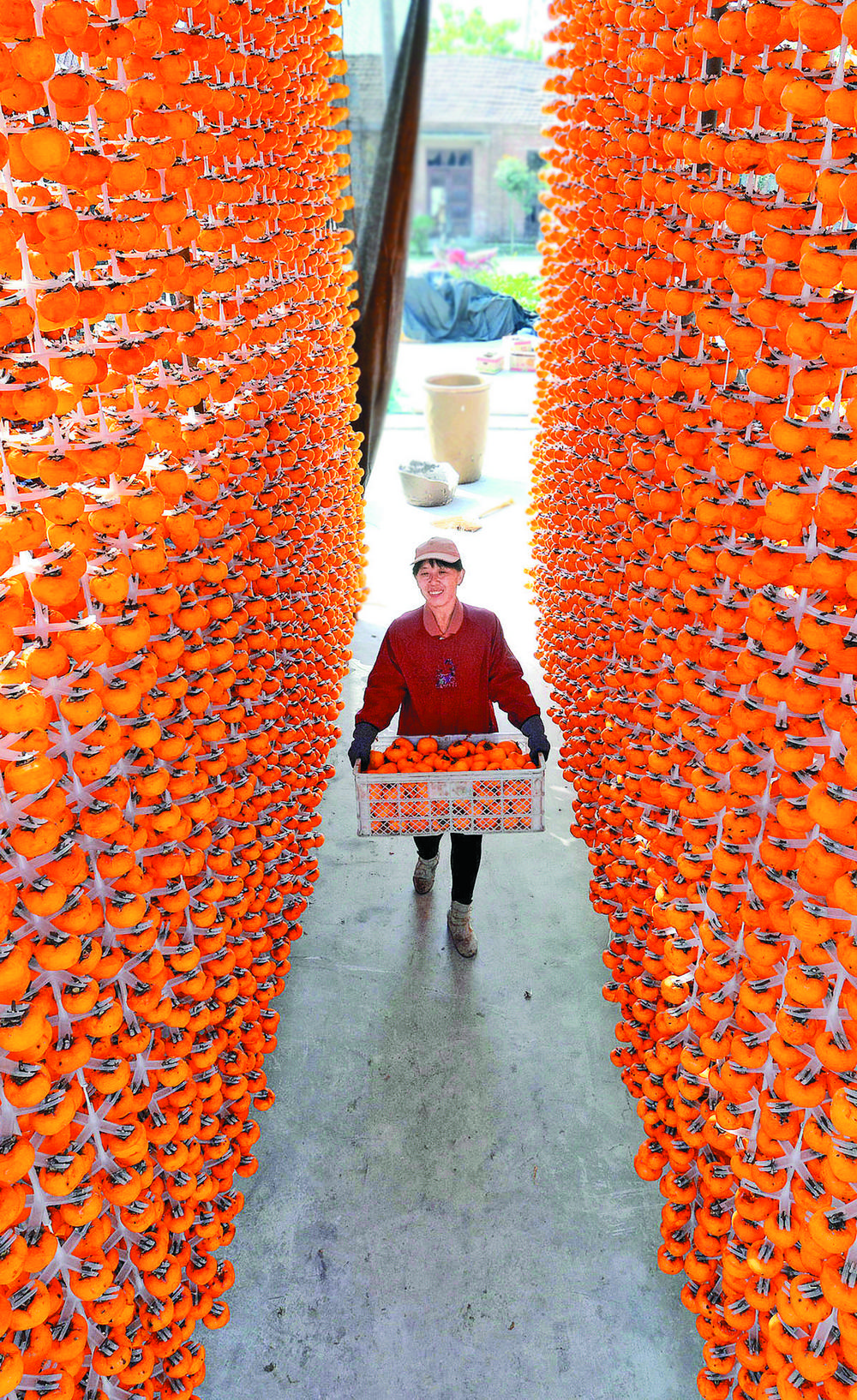 邯郸市磁县柿子迎来收获,当地农民加紧采摘、选果、削皮、吊晒,制成柿饼销往市场。今年上半年,邯郸全市县级以上现代农业园区规划总面积344.3万亩,已建成面积195.2万亩。
