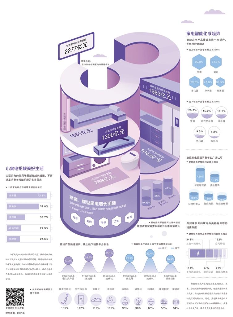 可以说,年轻人对家电的需求变化,给家电企业带来了新的机遇与挑战。一方面,年轻消费者的新品消费偏好,使家庭空间成为新品最好的展示场所,给众多细分品类带来了弯道超车的空间。另一方面,更加智慧、更多功能的要求,以及一件家电产品满足多个使用场景的需求,也对家电企业的研发创新能力提高了更多挑战。