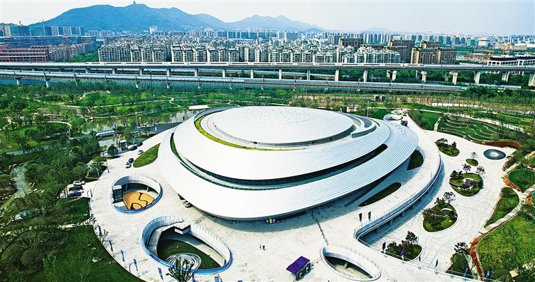 5月31日,俯瞰杭州电竞中心。当日,该中心正式向市民开放,吸引不少市民和电竞爱好者前来“打卡”。
