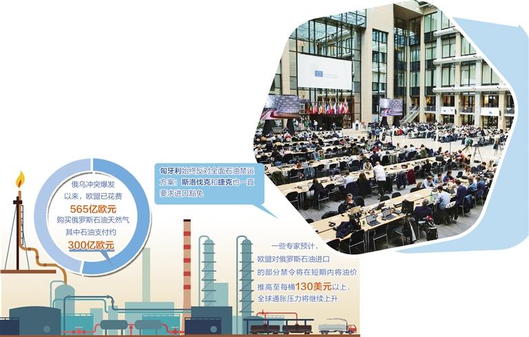 经过会上会下激烈讨价还价,欧盟只能以折中方案暂停争吵。最终方案是禁止海运俄罗斯石油进入欧盟成员国,但管道石油排除在外,以便匈牙利、捷克和斯洛伐克等成员国继续获得能源保障。至此,闹得沸沸扬扬的制裁案告一段落。