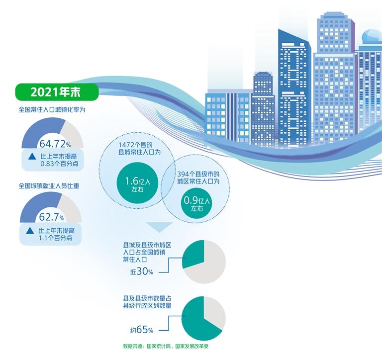 党的十八大以来,我国新型城镇化建设在要素集聚、产业发展、公共服务、土地利用、空间布局、人与自然关系等方面取得了一系列重要成就。城市集聚效应不断释放,有力支撑经济中高速增长;二、三产业协同发展,创造巨量城市就业机会;户籍人口城镇化加快,公共服务水平明显提升;城市土地利用效率提高,土地城镇化、人口城镇化的协调性增强;城镇空间格局进一步优化,城市群、都市圈逐步成为城镇化主要形态;生态环境治理力度显著加强,人居环境明显改善。2021年,我国常住人口城镇化率提升至64.72%,大量资源要素伴随人口向城市集聚。在供给侧,形成规模经济和范围经济,激发创新活力;在需求侧,推动消费不断扩大和升级,有效拉动城市投资。新型城镇化建设成就斐然,有力支撑了我国经济持续增长和居民生活水平不断提升。