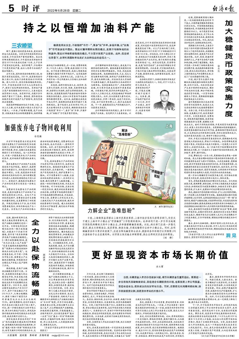 确保食用油安全,不能指望“单打一”,要多“油”并举、多措并施,让“油瓶子”尽可能多装中国油。要应对播种面积有限的痛点,发展不与粮争地的油料品种;要应对种植积极性低的痛点,千方百计提高产业效益。此外,在全球化背景下,合理利用国际市场是扩大油料供应的途径之一。