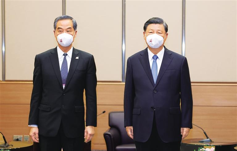习近平指出,你担任全国政协副主席以来,为国家现代化建设和香港繁荣稳定倾心尽力,这是非常难能可贵的。希望你全力支持新一任行政长官和新一届特别行政区政府依法施政,同社会各界人士一道,为“一国两制”实践行稳致远作出新贡献。