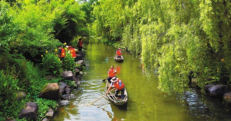6月30日,浙江省湖州市德清县钟管镇开展“守护家乡美”志愿活动,组织党员志愿者巡河护水,守护美丽家园。王 正摄(中经视觉)