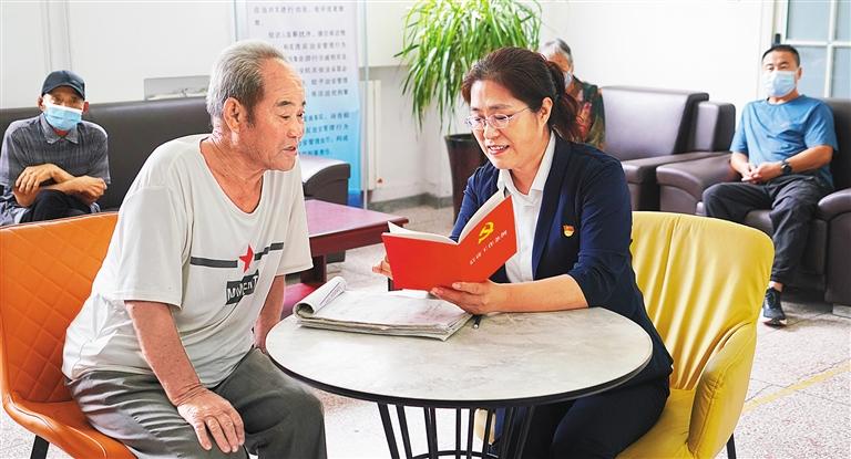 6月30日,雄安新区安新县信访局党支部书记刘小丛(中)在群众工作中心,详细了解群众遇到的困难与诉求,逐一登记,逐条解决。张 航摄(中经视觉)