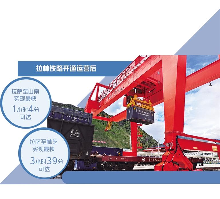 随着拉林铁路开通运营,拉萨至山南、林芝实现最快1小时4分、3小时39分可达,这让西藏群众的“朋友圈”不断扩大。“如今,西藏形成了以青藏铁路为主通道,拉日铁路和拉林铁路为区内东西两通道的‘一主两翼’铁路交通格局,进一步完善了路网结构,促进了区域经济社会发展和民生改善。”拉萨火车站站长王福说,目前,拉萨至林芝间每日开行动车组列车4列、普速直达特快列车2列,日喀则至林芝间开行动车组列车2列,最高日发送旅客4300余人次,极大地便利了沿线群众出行。