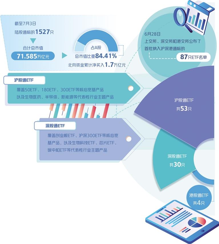 “从数量上看,沪深两市的ETF纳入互联互通的标的较多,方便了香港及海外投资者,包括机构及个人投资者来购买上交所和深交所的合资格上市ETF,将会给A股带来较大增量资金。这是继沪港通、深港通开通股票的互联互通后,在ETF方面开通的互联互通机制,未来还将持续优化完善互联互通机制,为投资者投资提供便利,同时为两地市场吸引源头活水。”前海开源基金首席经济学家杨德龙说。