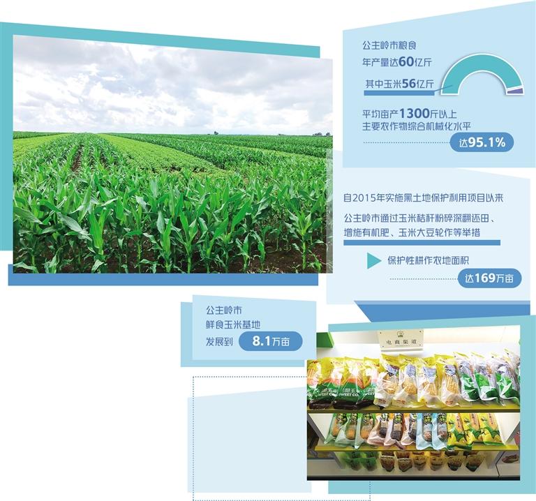 粮食年产量达60亿斤,平均亩产1300斤以上,二者均居全国产粮大县前列;积极实施国家黑土地保护试点,土壤有机质不断改善,主要农作物综合机械化水平达95.1%……吉林省公主岭市地处素有世界“黄金玉米带”之称的松辽平原腹地,近年来专注黑土地保护,加强种业研发,做强玉米产业链条各环节,玉米产业成为当地的“黄金名片”。