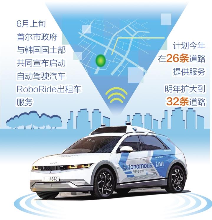 6月上旬,首尔市政府与韩国国土部共同宣布,自动驾驶汽车RoboRide出租车服务正式启动,服务范围是首尔市区最繁华也是交通状况最复杂的江南地区。首尔市计划今年在德黑兰路、江南大路、永东大路、彦州路、南部循环路等26条道路(48.8公里)开始提供服务,明年将把运行范围扩大到岛山大路、狎鸥亭路等32条道路(76.1公里)。