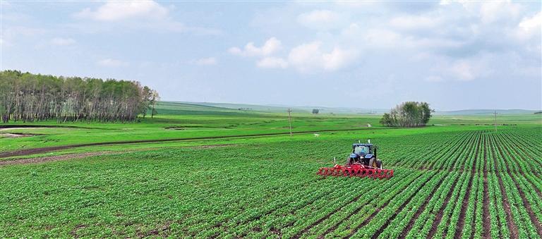 7月5日,大型农机在内蒙古呼伦贝尔格尼河农场田间进行中耕除草作业。今年,呼伦贝尔农垦格尼河农牧场有限公司积极推进耕种机械化,为粮食稳产、高产打下基础。
