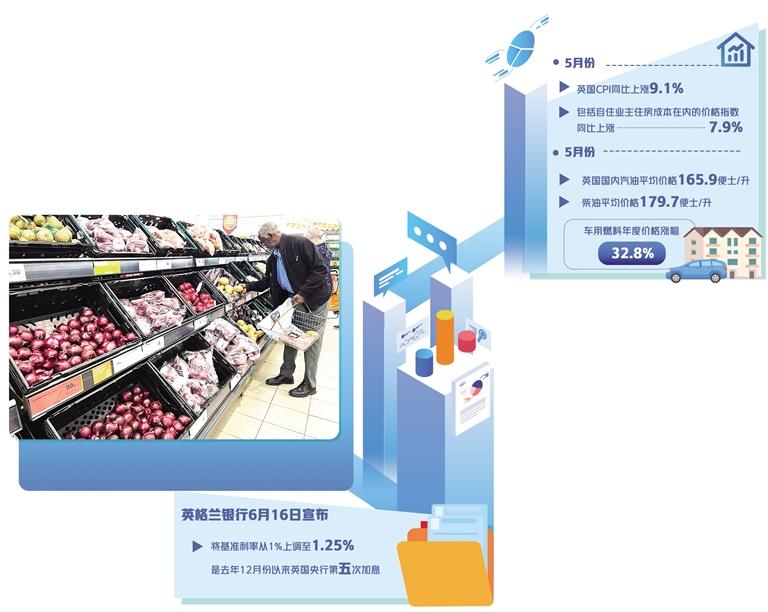 英国统计办公室6月22日发布数据显示,5月份英国CPI年率上涨9.1%,高于4月份的9%;包括自住业主住房成本在内的价格指数(CPIH)年率上涨7.9%,高于4月份的7.8%。