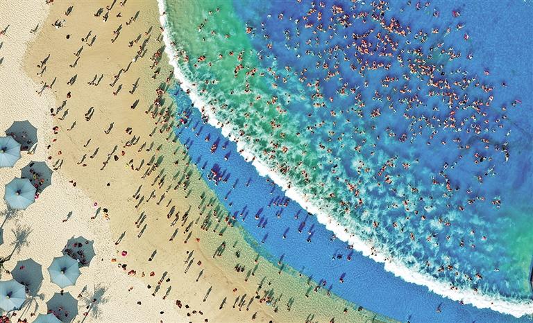7月10日,游客在四川省泸州市纳溪区一公园戏水游玩。连日来,四川多地持续高温,市民纷纷走进水上乐园等场所,乐享夏日清凉。廖胜春摄(中经视觉)
