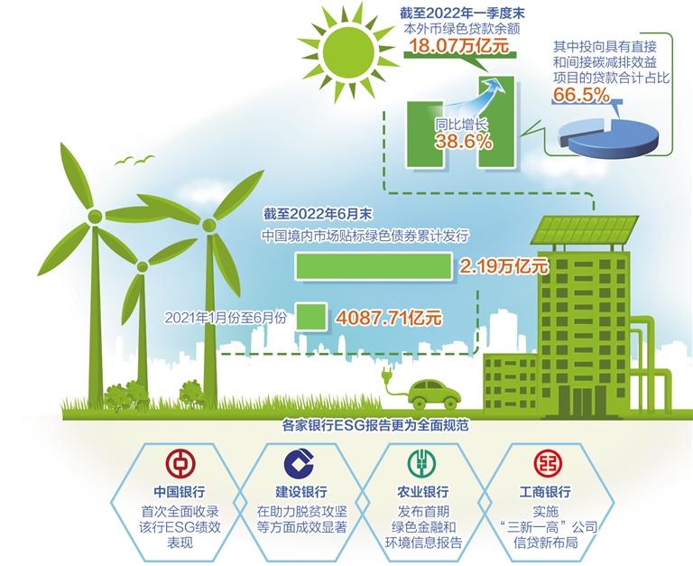 在碳达峰、碳中和政策目标指引下,ESG(环境、社会和治理)已成为金融机构的“必答题”。今年上半年,银行纷纷发布ESG相关报告,多角度呈现其践行绿色理念、以绿色金融促进实体经济发展的情况。中国银保监会6月初印发的《银行业保险业绿色金融指引》更是明确要求从战略高度推进绿色金融,并首次提出将ESG纳入全流程监管。