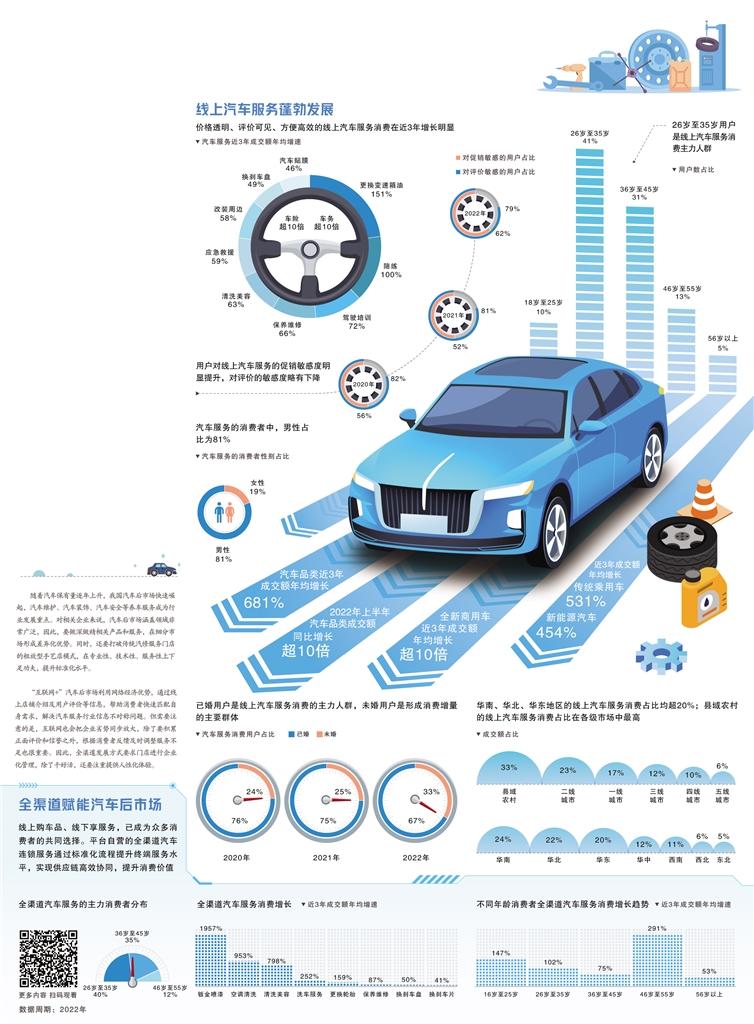 一是全渠道商品服务交易。平台通过与汽车服务行业头部品牌达成战略合作,不仅拥有新品首发权,让消费者在信息透明、有平台保障的情况下购买配件和服务,还能提供线上下单、线下门店安装或提货等服务,推动线上线下真正融合。线上线下全渠道服务模式蓬勃发展,在满足消费者购物渠道多元化需求的同时,也助力众多品牌、商家和合作门店,实现高质量增长。