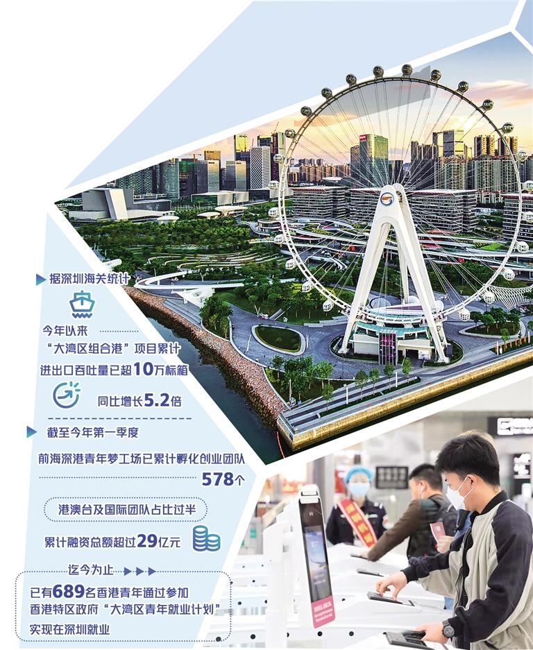 2021年3月,深圳正式出台《关于进一步便利港澳居民在深发展的若干措施》。如今在深圳,像李志峰一样“逐梦大湾区”的港澳青年越来越多。截至今年第一季度,前海深港青年梦工场已累计孵化创业团队578个,港澳台及国际团队占比过半,累计融资总额超过29亿元。迄今为止,已有689名香港青年通过参加香港特区政府“大湾区青年就业计划”实现在深圳就业。