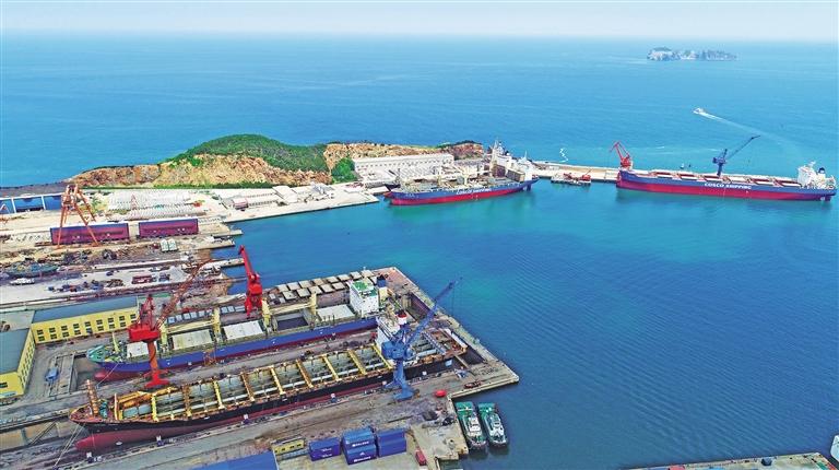 七月十一日,在山东省荣成新霞修船有限公司干船坞和码头,多艘船舶停靠在此进行维护保养。今年以来,荣成市各修造船企业在做好疫情防控、闭环管理的基础上,抢赶工期,加强技术创新,加大产品结构优化升级和优质海工资源盘活力度,推动修造船行业回暖。王福东摄(中经视觉)