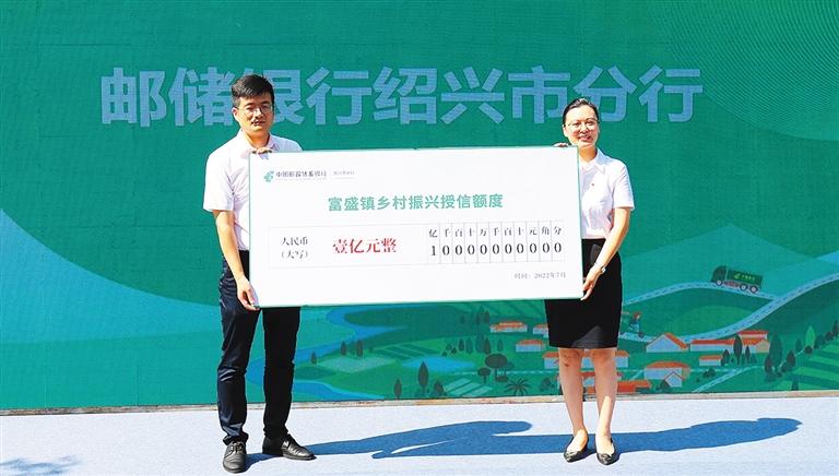 邮储银行绍兴市分行还为越城区富盛镇乡村振兴授信进行了授牌,授信额度金额1亿元。