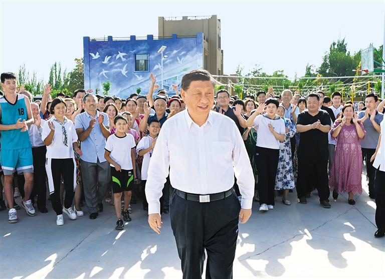 7月12日至15日,习近平在新疆维吾尔自治区党委书记马兴瑞、自治区政府主席艾尔肯·吐尼亚孜陪同下,先后来到乌鲁木齐、石河子、吐鲁番等地,深入学校、国际陆港区、社区、博物馆、农村和新疆生产建设兵团等进行调研。