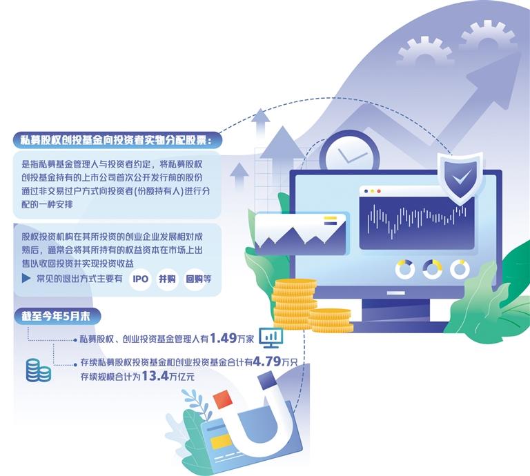 7月8日,中国证监会官网发布消息称,近日已启动私募股权创投基金向投资者实物分配股票试点工作。业内人士普遍认为,试点的启动将进一步拓宽私募股权创投基金退出渠道,有利于增加资金流动性,加速形成“募投管退”的良性循环生态体系,从而更好地支持我国实体经济发展。