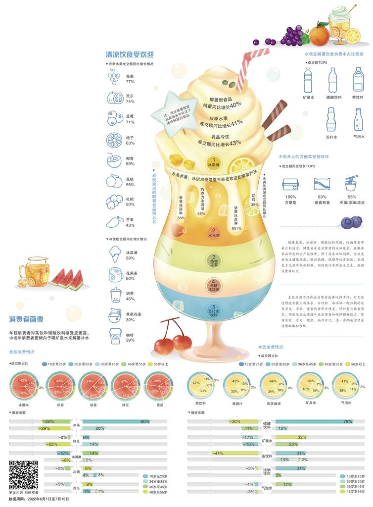 一到夏天,很多消费者会通过食用冰淇淋、凉茶等消暑食品由内而外降温。特别是今年各类雪糕话题热度不减,反映出清凉水饮食品不断丰富的趋势,体现了消费者对高性价比消暑食品的期待。