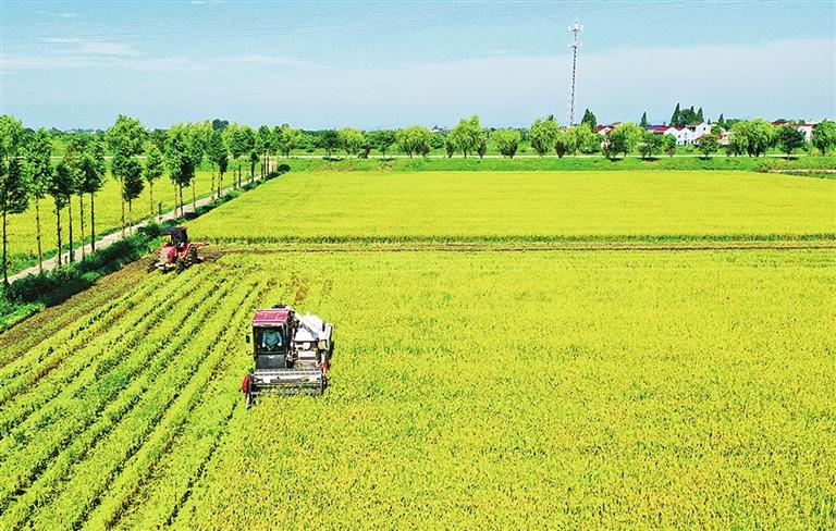 7月20日,浙江省湖州市双林镇,农户驾驶收割机抢收早稻。连日来,当地早稻陆续成熟,农民抓紧收割,为后续晚稻播种打下基础。张 斌摄(中经视觉)