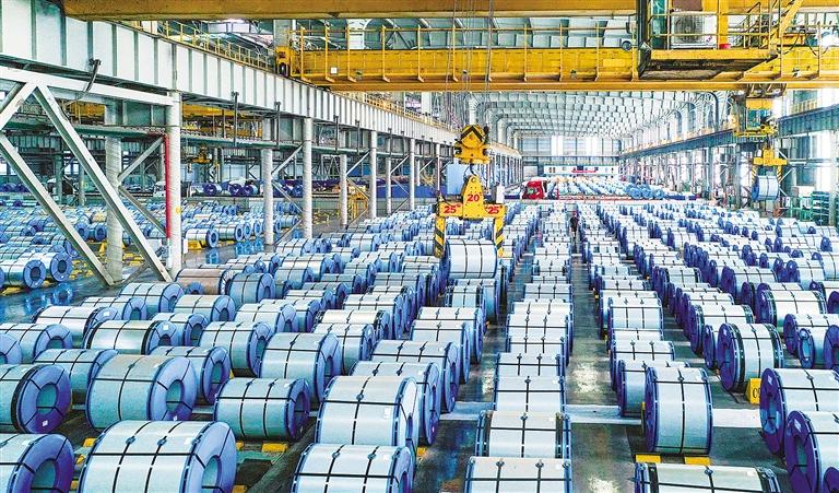 7月22日,中国宝武马钢集团在对冷轧镀锌产品进行吊装发货。中国宝武马钢集团加大差异化精品增效力度,加强产销联动,更好满足市场需求。陈 亮摄(中经视觉)