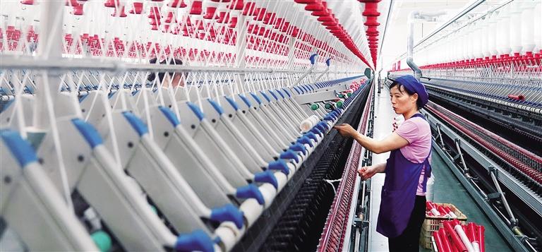 7月26日,江西万达美线业有限公司高速涤纶缝纫线生产车间,工人在生产线上忙碌。该公司生产的涤纶缝纫线主要出口“一带一路”沿线国家和地区。近年来,江西加强科技创新,推动产业优化升级,打造纺织服装产业高地。今年前5月,江西纺织服装行业出口26.9亿美元,同比增长33.4%。徐 云摄(中经视觉)
