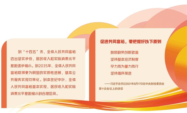 其中,“坚持以人民为中心的发展思想”是我国经济发展的根本立场,促进全体人民共同富裕是这一根本立场的鲜明体现。党的十八大以来,习近平总书记对促进全体人民共同富裕提出一系列重要论断,为新发展阶段推动人的全面发展、全体人民共同富裕取得更为明显的实质性进展提供了根本遵循和行动指南。