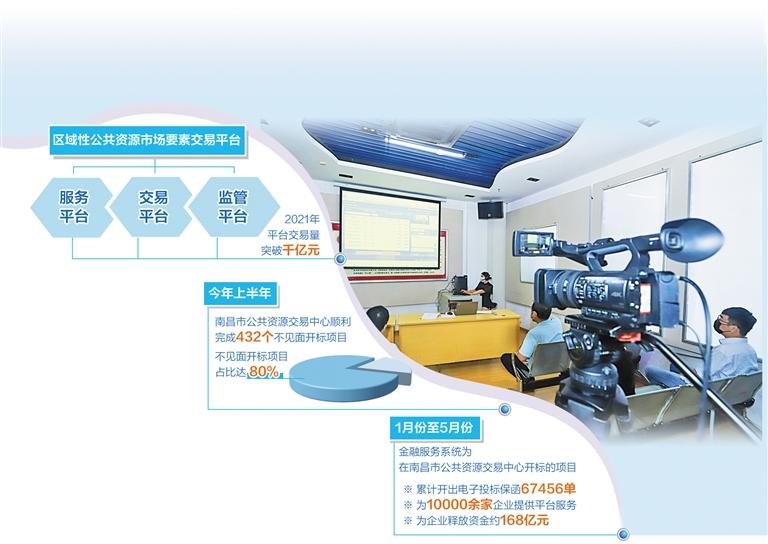 公共资源交易平台连接供需两端,是各类市场主体获得项目、进入市场的重要途径。近年来,南昌将原来省市县(区)乡镇四级交易平台共89个交易中心(站)精简整合为南昌市公共资源交易中心和3个县级分中心,全面取消城区交易中心和乡镇交易站,打造集服务平台、交易平台、监管平台于一体的区域性公共资源市场要素交易平台。2021年,该平台交易量突破千亿元大关。