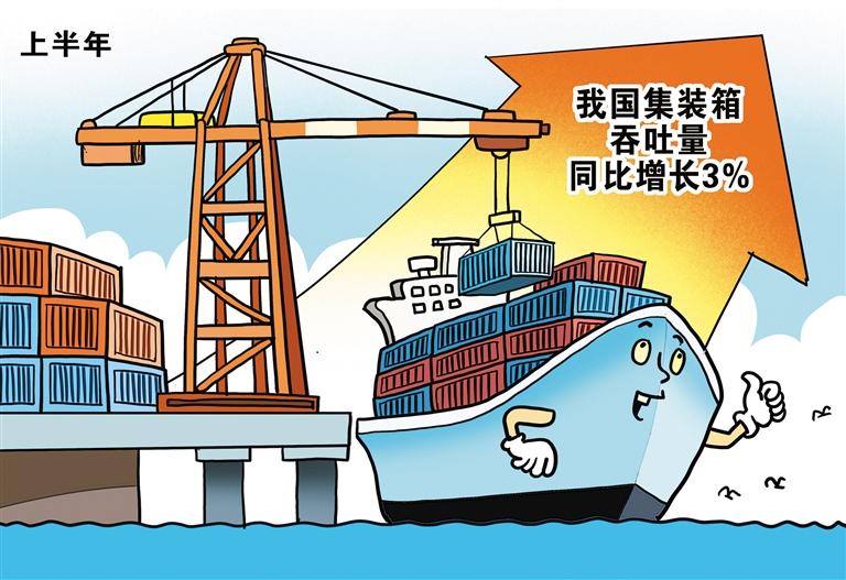 日前,交通运输部发布数据,上半年,我国集装箱吞吐量完成1.4亿标箱,同比增长3%。其中外贸集装箱吞吐量超过8500万标箱,同比增长6.1%。随着物流保通保畅等各项措施落实到位,我国上半年交通运输主要指标逐步恢复,特别是货运量基本恢复至去年的同期水平,港口外贸集装箱吞吐量保持增长,交通投资、快递业务量总体回归到正常发展轨道。下半年,应进一步做好扩大交通有效投资工作,坚持适度超前,以联网补网强链为重点,提前实施一批重大交通工程;督促各地紧抓施工“黄金期”,在确保质量和安全的前提下形成更多实物工作量。(时 锋)